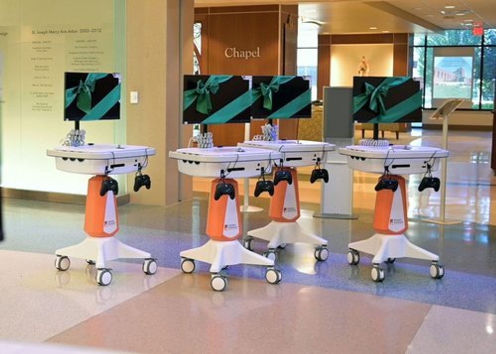 GameAbove and Gamers Outreach have gifted 12 Gamers Outreach Karts (GO Karts -- portable gaming kiosks) to Trinity Health St. Joseph Mercy Ann Arbor and Trinity Health St. Joseph Mercy Oakland hospitals. The two organizations visited the Ann Arbor location on Thursday, June 23, 2022, for a special ribbon-cutting ceremony and to welcome the new gaming kiosks.